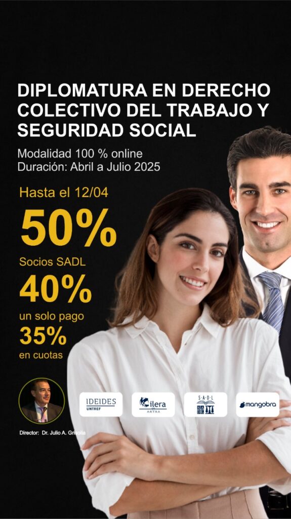 Desde 2007 más de 10.000 cursantes. Articulada con la MAESTRIA EN DERECHO DEL TRABAJO Y RELACIONES LABORALES INTERNACIONALES (UNTREF) dirigida por el Dr. Julio A. Grisolia.