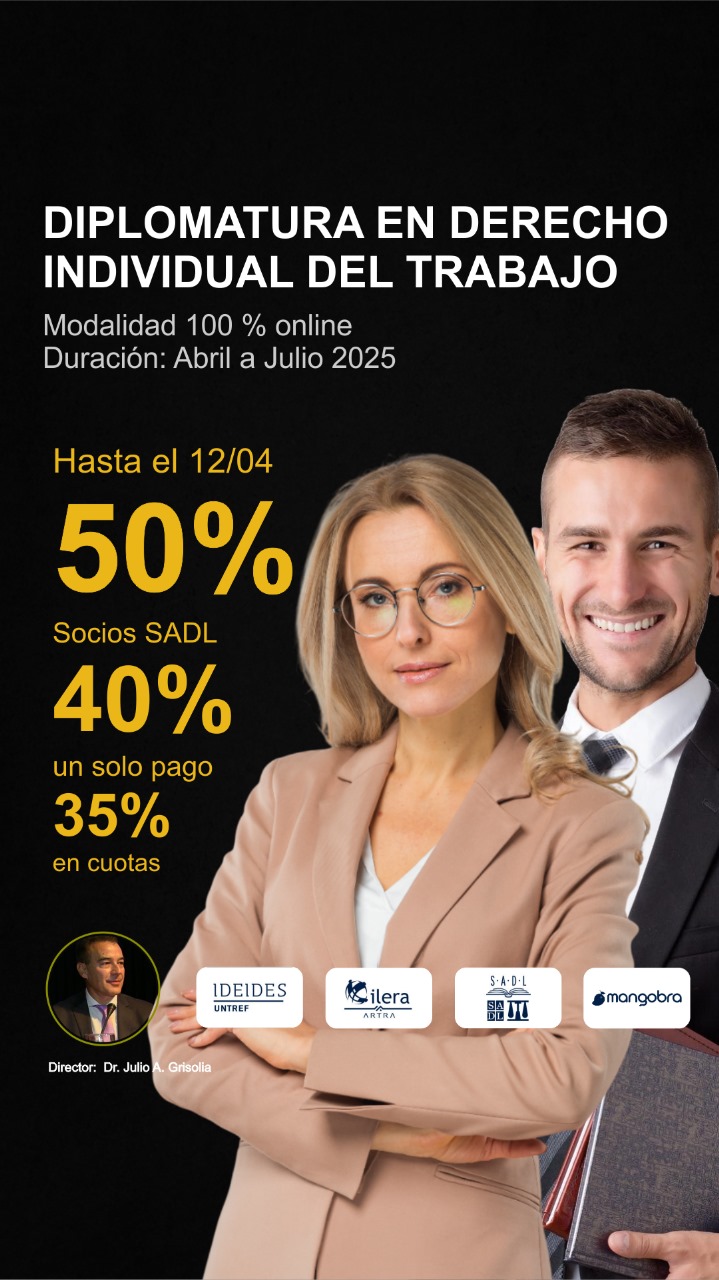 Desde 2007 más de 10.000 cursantes. Articulada con la MAESTRIA EN DERECHO DEL TRABAJO Y RELACIONES LABORALES INTERNACIONALES (UNTREF) dirigida por el Dr. Julio A. Grisolia.